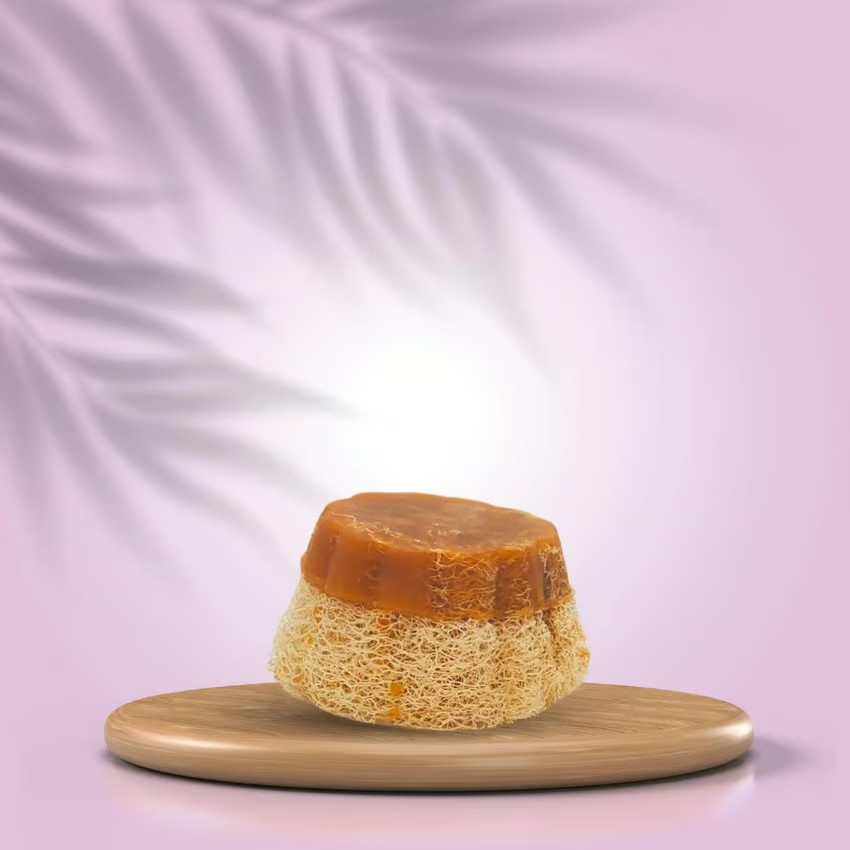 صابونة جلسرين فائقة الترطيب و مضاف اليها خلاصة الكركم و المر فترطب الجسم كما تساعد على التفتيح . كما تتميز برائحة الفواكه الاستوائية الرائعة