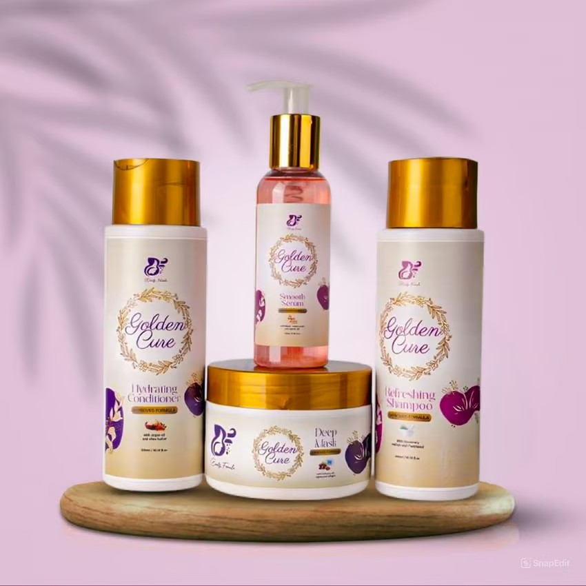 مجموعه جولدن كيور كامله (شامبو وبلسم وماسك وسيرم الجولدن كيور)
